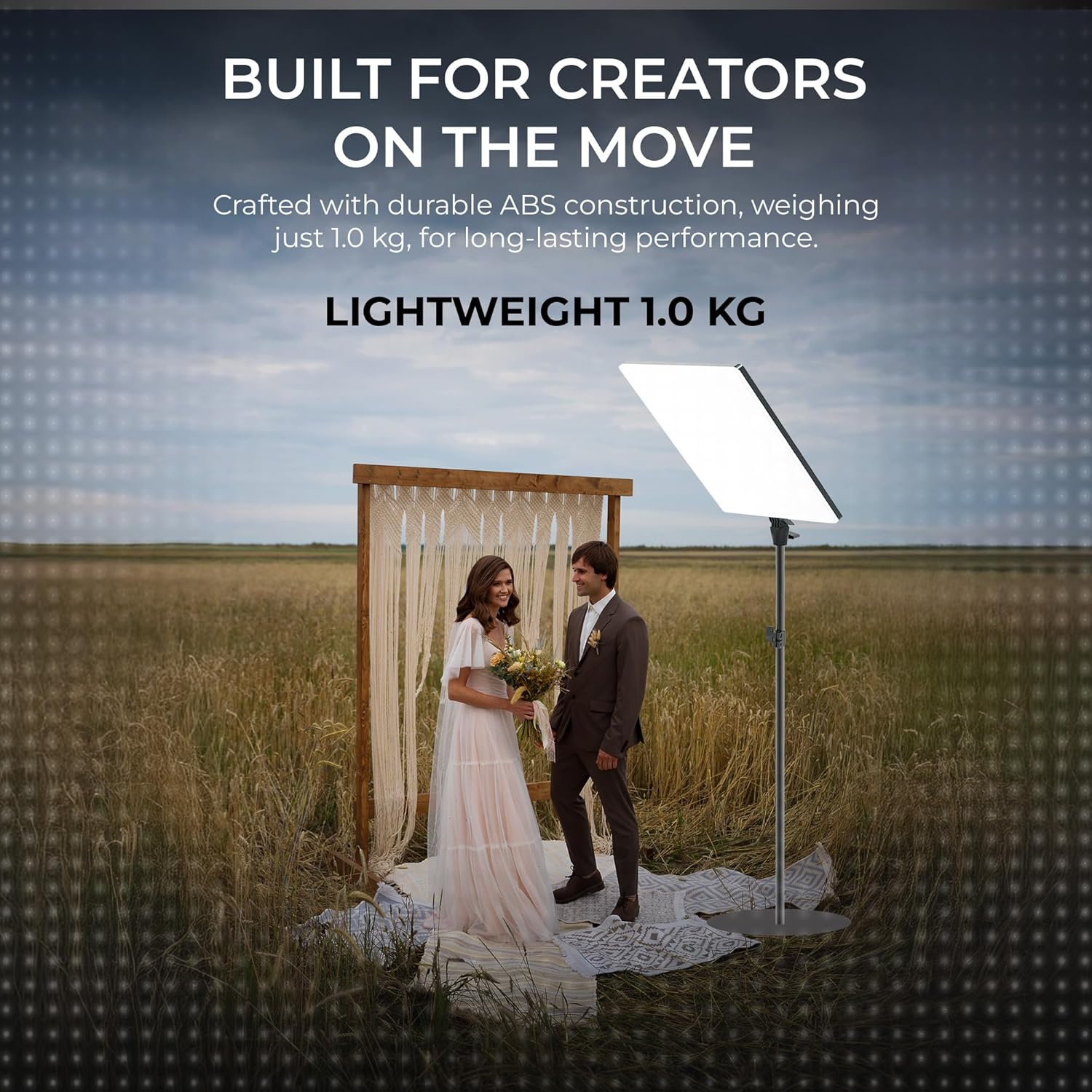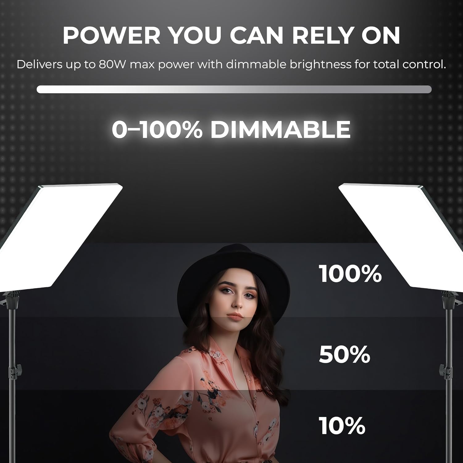 - Full Dimmable Control – Adjust brightness from 0–100% to match any shooting environment.