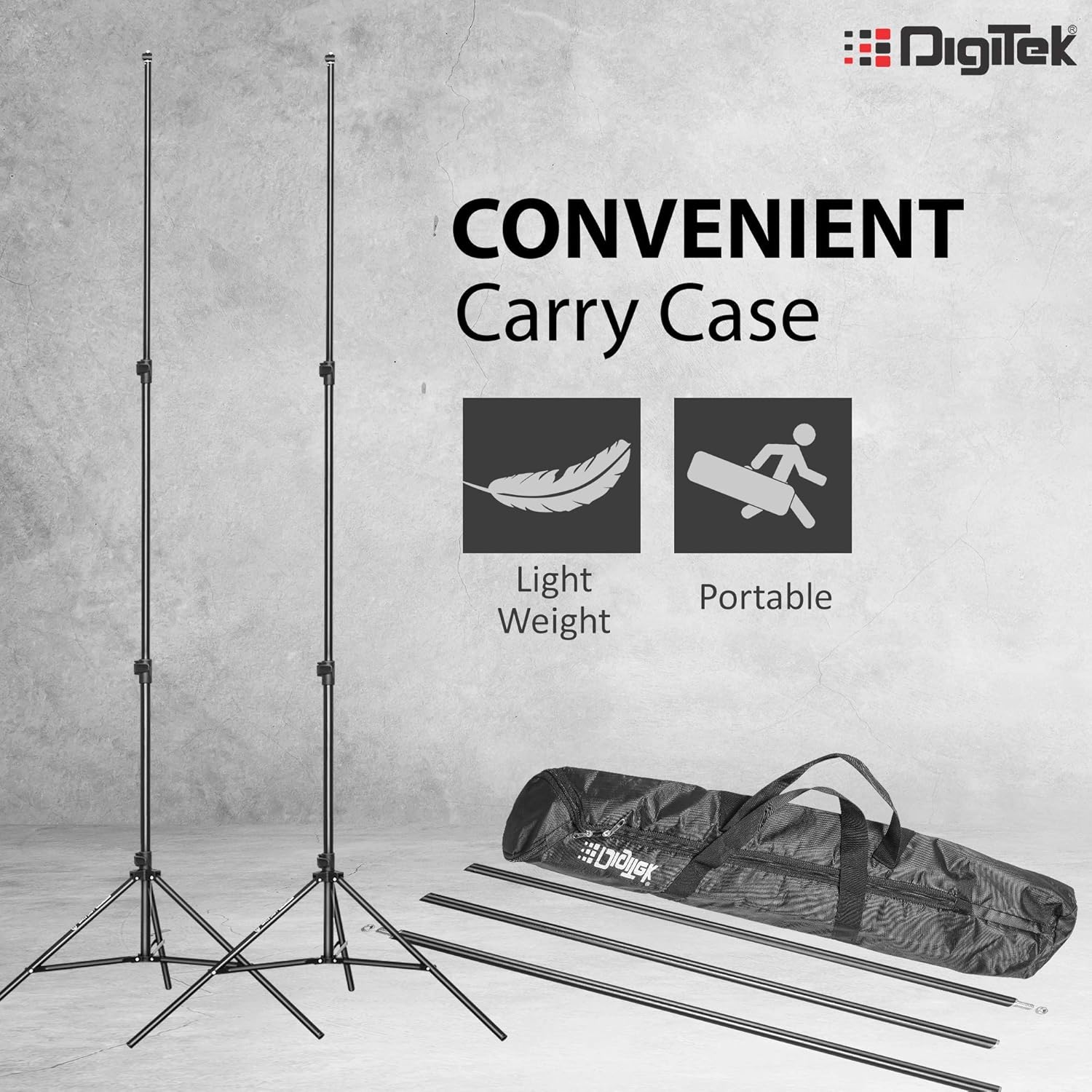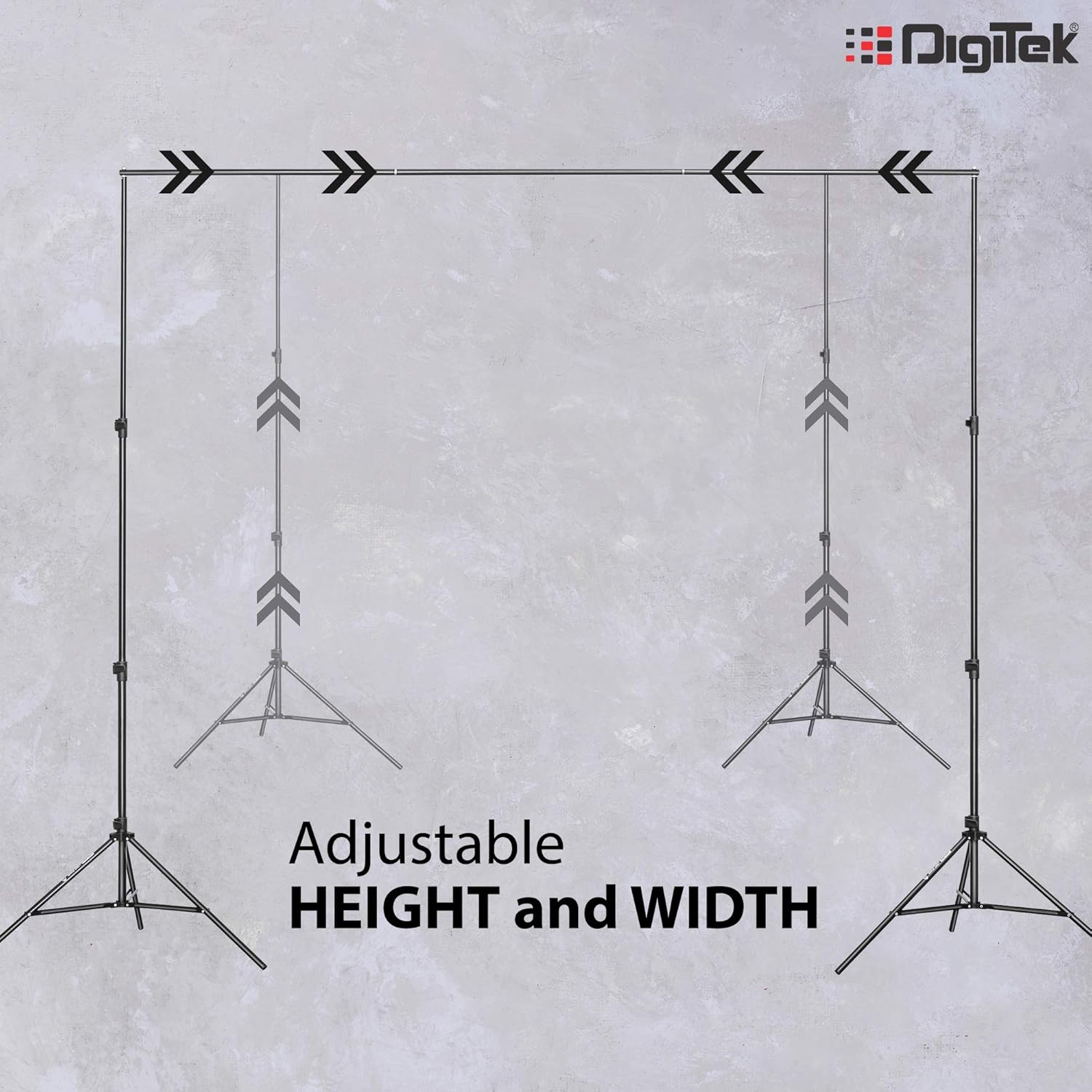 • Digitek Studio Backdrop Stand Kit Suitable for holding Photography & Videography Backdrops, Wedding Backdrop, Studio shoots, Selfie Booth Backdrop, Video Call Background, Projector Background, Online Video Shoots, and many more.