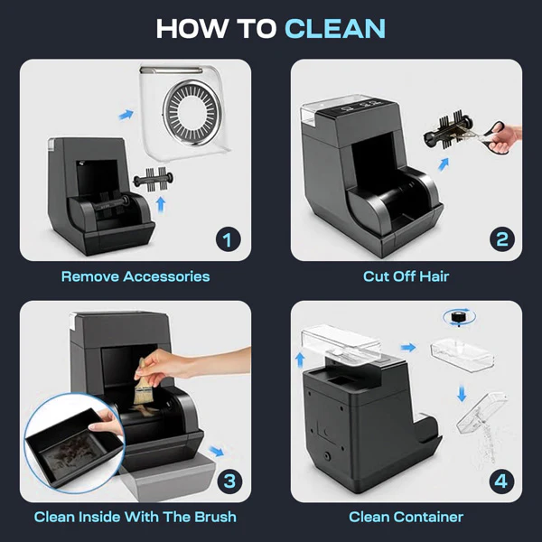• Precise Ultrasonic Spray System – It evenly sprays sanitizing liquids onto hair brushes ensuring every part of brush is covered.