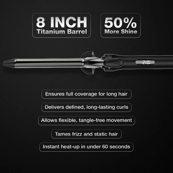 The innovative auto button lock feature prevents accidental temperature adjustments, ensuring a seamless and safe styling experience. With a maximum heat setting of 210°C, this curler heats up quickly and is suitable for fine, delicate hair as well as thick, coarse textures. The heat-resistant cool tip provides added safety, allowing you to hold the curler securely while wrapping hair for precise styling.