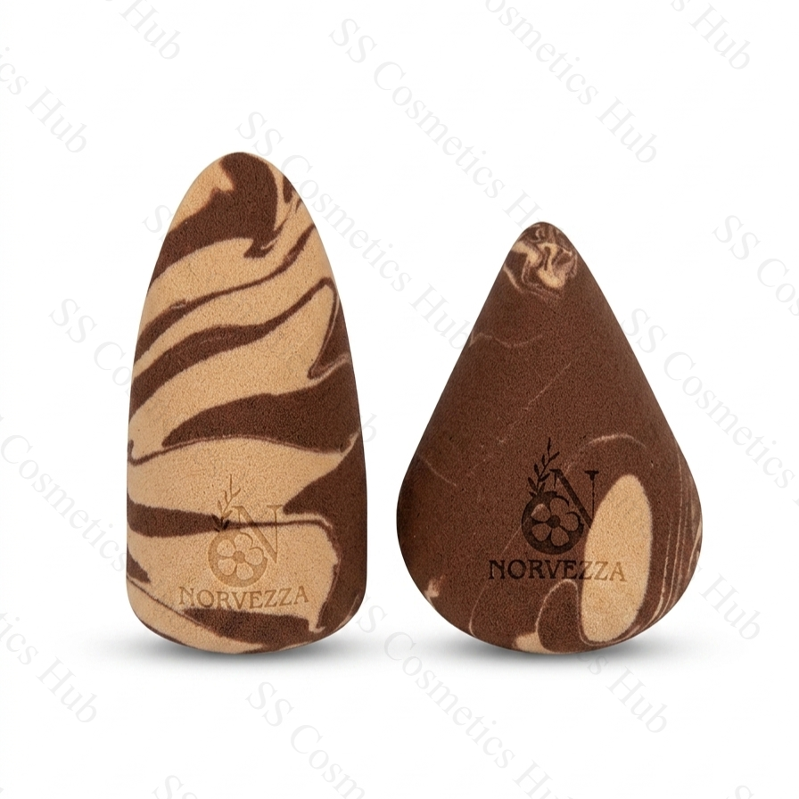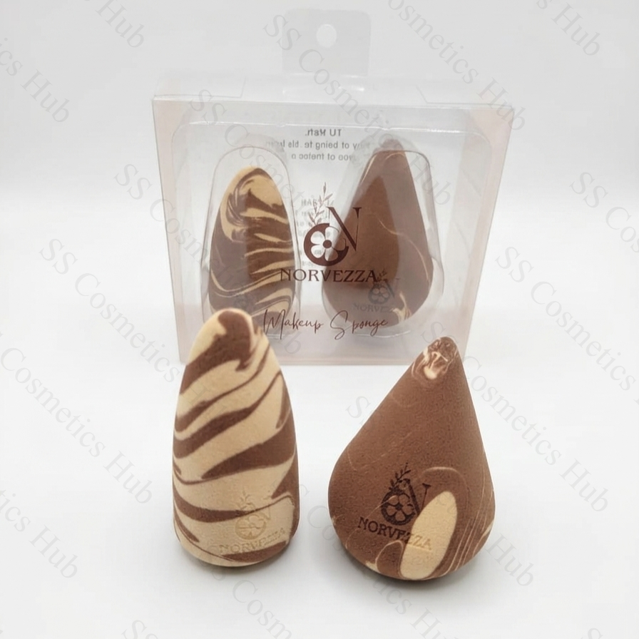 This set includes two uniquely styled sponges for both function and flair. One showcases an elegant brown marble swirl pattern, adding sophistication to your beauty toolkit, while the other captivates with its rich, warm brown tone. Both sponges are tastefully embellished with the discreet Norvezza logo, a subtle nod to quality and refinement. Perfect for everyday use or as an exquisite gift for beauty lovers.
