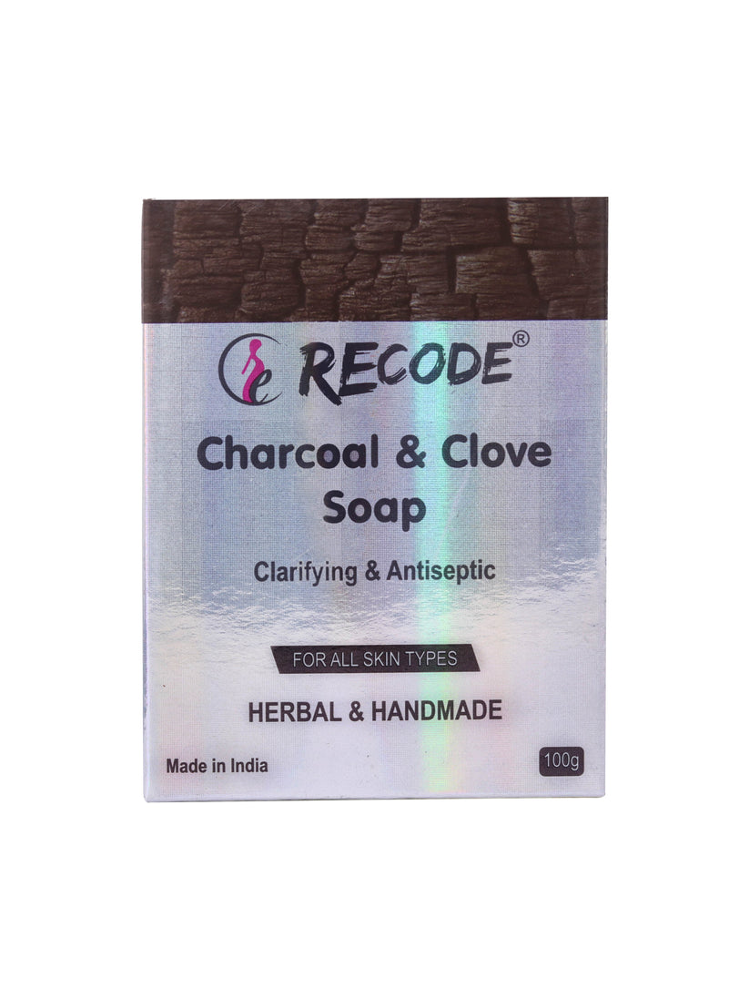 Recode handmade Charcoal & Clove Soap removes dirt, pollutants and impurities. Gives a smooth and glowing skin. Helps give your skin soothing, moisturizing and softening benefits while leaving mild scent behind. Making you feel heavenly and luxurious. It has antiseptic and cooling properties that leave the skin refreshed.