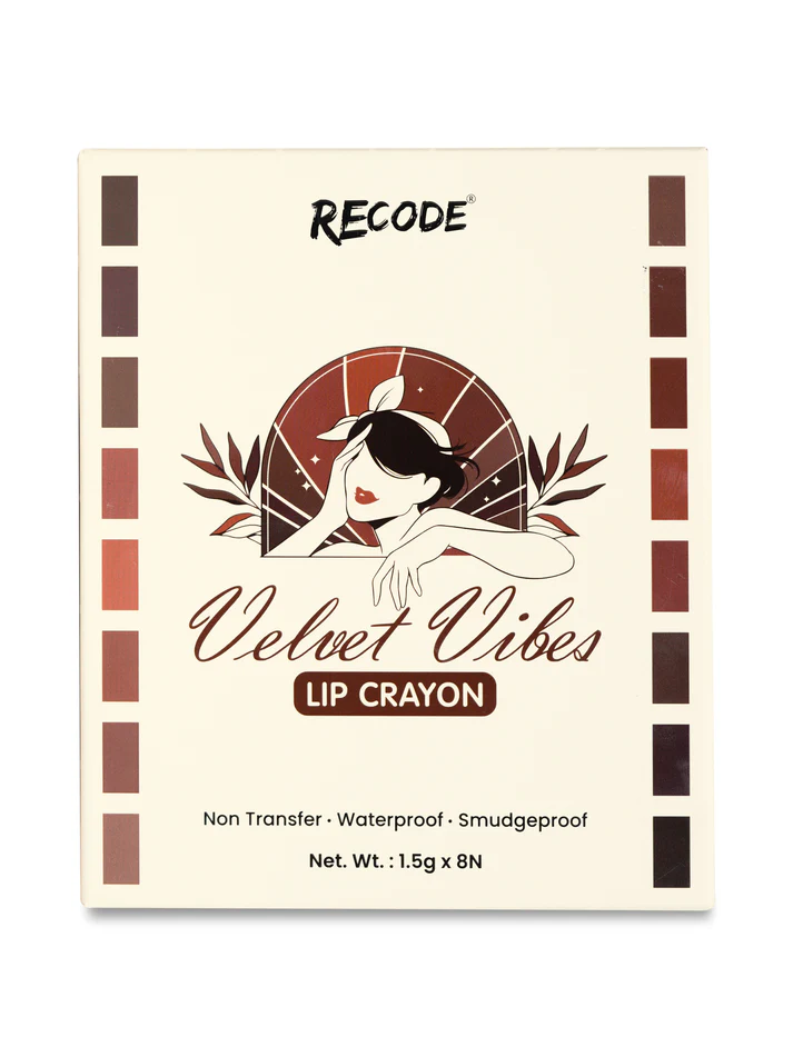 Meet the ultimate lip wardrobe with the Recode Velvet Vibes Smudge-proof and Waterproof Set of 8 Lip Crayons — a stunning collection of richly pigmented shades designed to complement every mood, outfit, and occasion. From everyday nudes to bold statement hues, this versatile set delivers a smooth, velvety matte finish that feels as luxurious as it looks.