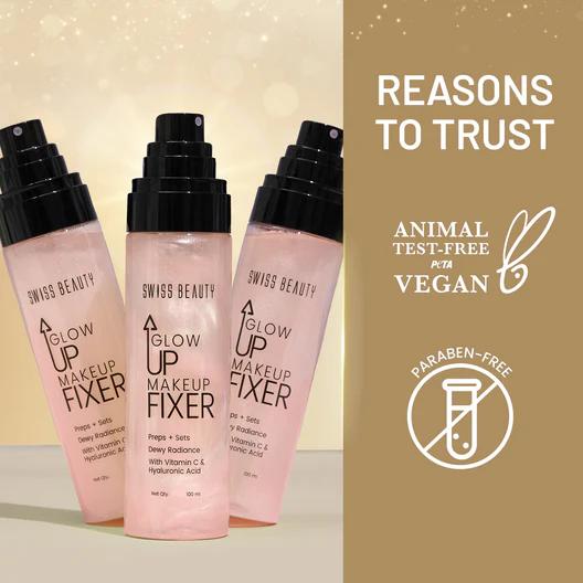 Step into your Glow Up Era with the Swiss Beauty Glow Up Makeup Fixer—the ultimate radiance booster for face and body. This 2-in-1 mist preps your skin before makeup, sets your look after, and refreshes anytime you need a burst of hydration and glow. Enriched with Vitamin C to brighten and revive, and Hyaluronic Acid to hydrate and plump, it delivers a soft, dewy finish that lasts all day.Â